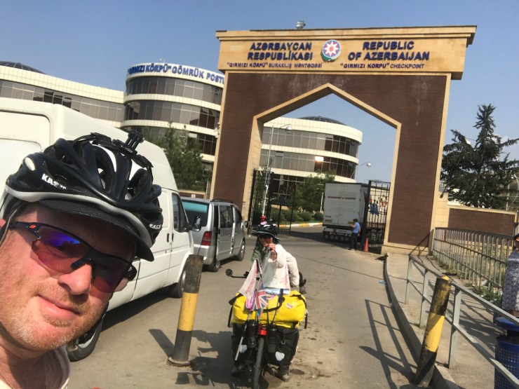 Country 18 – Azerbaijan! this is the most thorough security checks at a border yet, checked our bags, papers..militarily check, police checks, customs checks… kept asking if I had a gnome?? WTF.. I said yes at home but not on me, why would I carry a garden gnome? anyway finally made it through, but it’s about 45 degrees, now time to find somewhere to pitch the tent, thatโs going to be a boil in the bag job – anyway first impressions, the People of Azerbaijan seem very friendly, so all good for first day.