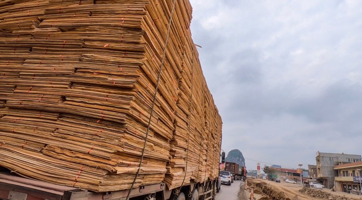 Pictured below you can see the pine veneers drying out on racks in the humid heat, thereโs literally millions of these to been seen around this region. The veneers are used in both the furniture manufacturing trade, and are also bonded together in a lamination process to make sheets of plywood.