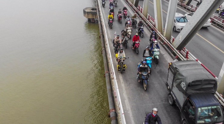 can you spot the 2 cyclists on one of the busiest bridges into Hanoi Vietnam 😳🤣 🚴♂️🚴♀️ would you like to see the film footage? 🎥 @ Hanoi, Vietnam