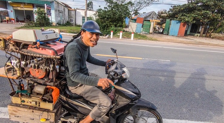 Just like like this happy chappy! he’s the local key cutter in one of the villages we were recently cycling through on the coast of Vietnam, click below to watch the film clip.