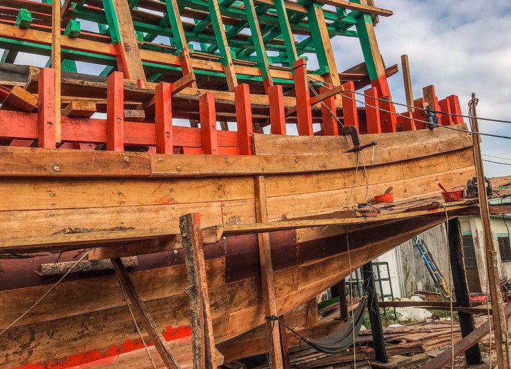 The last 2 days have got to have been the most interesting parts of Vietnam, from meeting all sorts of families living from small wooden and tin huts at the side of the river, to boat building families and masters of many other trades, the boat building family is something we’ll never forget, just look at this! they are building this boat entirely by hand, they split the timber logs with traditional methods, by driving steel wedges into the grain, they smooth and shape the timber planks and framework with an electric hand planer and circular saw, other than that, it’s just hammers and axes. This was fascinating to see, I actually come from the same background but we used machinery and many skilled people, this boat is being constructed by 3 men and all by hand! once complete it’s simply rolled backwards into the river on a series of logs.