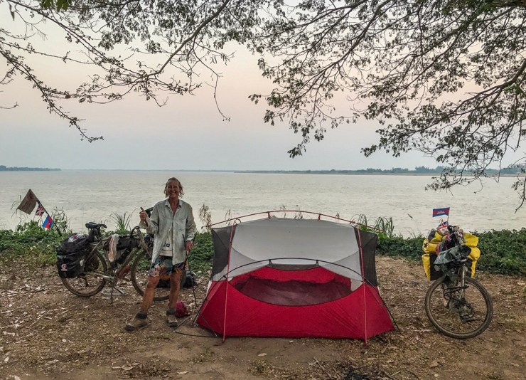 So here we are camped at the back of the Town Hall next to the Mekong River, and we are directly opposite the Police Station ๐ณ