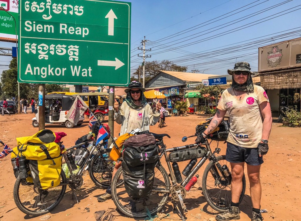 After almost 2 weeks cycling off road through all the villages of Cambodia and living from the tent, today weโve made it to the very touristy Siem Reap, home to the famous Angkor Wat, so we are staying at a Hostel for $12USD – so that blows the daily budget, but at least it has a pool!