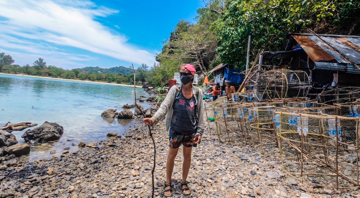Some of the photos below show the Sea Gypsy village, which is near to where we are camped, you can see one of the tribe making fishing baskets and camouflaging them with leaves, you’ll notice theres plastic bottles tied to the baskets, these are used as flotation devices, they collect the plastic bottles and other waste materials from the ocean. Some people think that the Sea Gypsies are untidy and create rubbish, which is in fact wrong, the rubbish you see around them is everything they’ve collected from the ocean which they are reusing, for both fishing aids and building their homes, as remember, they don’t go to a shop and buy anything, especially products in plastic, in fact they create hardly any waste, they must be some of the most environmentally friendly people on the planet.