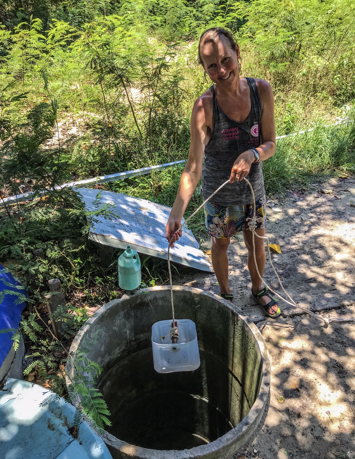 We have to come this way to get to a near by water source, which is a fresh water well located in the jungle, made by the Sea Gypsies, we have to walk through the sea with back packs fully loaded with bottled water from the well, we do this at low tide as the water is only waist high. As basic of a life that we are living, we still obviously rely on modern technology, such as a camera, mobile phone and a torch, so a question many people ask us is how do we keep them charged, well that’s easy, we have a large fold up solar panel, we charge power banks though-out the day, which is basically a large battery that we then charge our devices from, our bikes also have charging dynamo hubs on the front wheel, but we are obviously not using them at the moment.