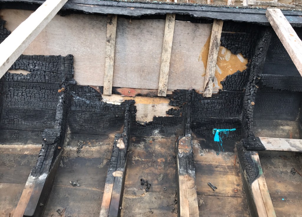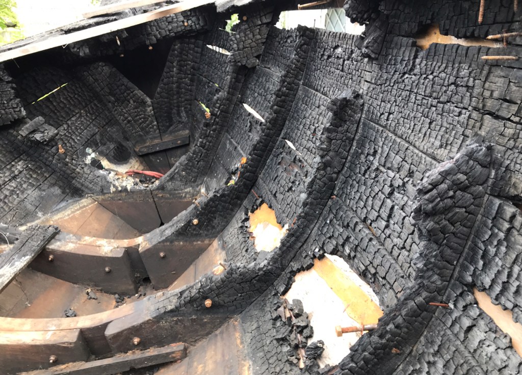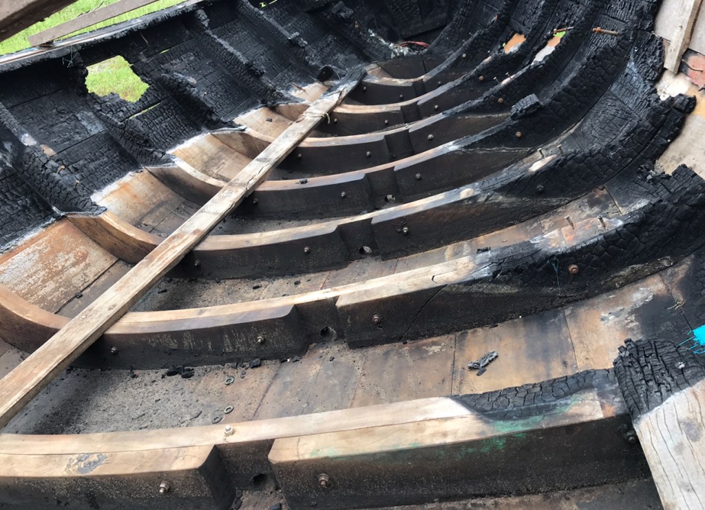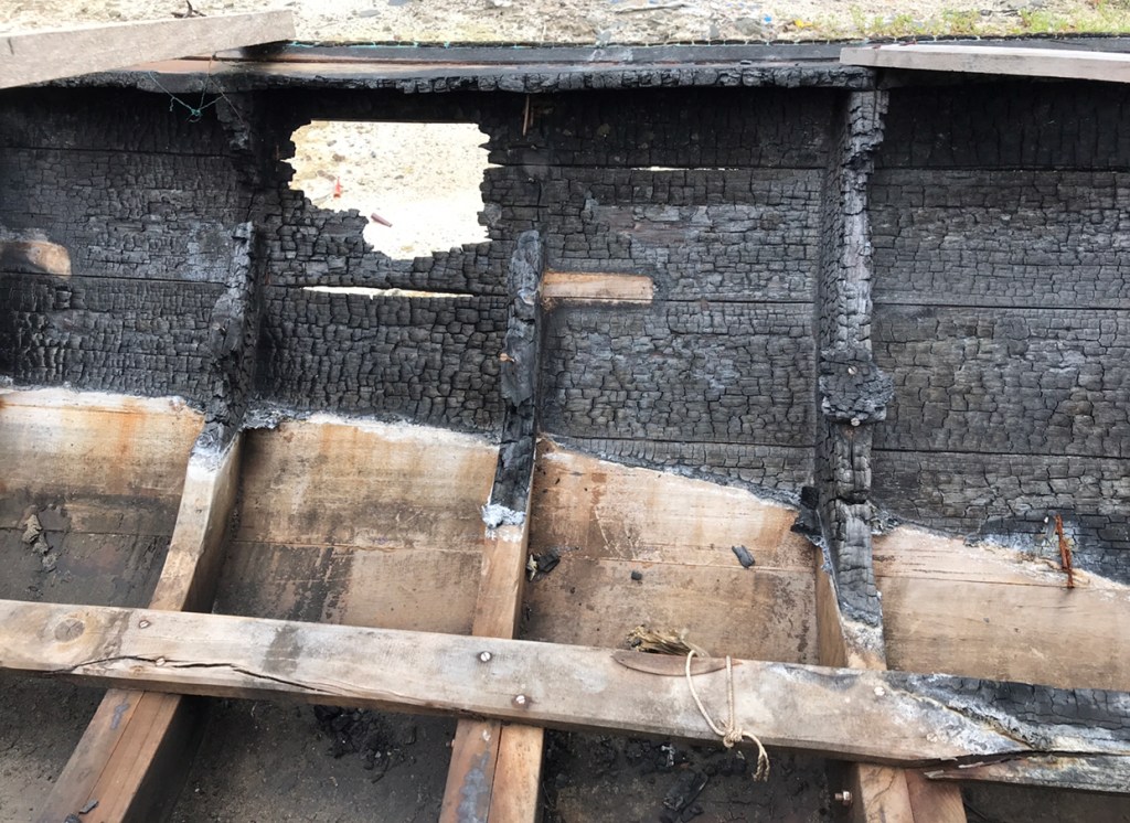 5. Replace all the burnt wood on the boat, and prepare for finishing.