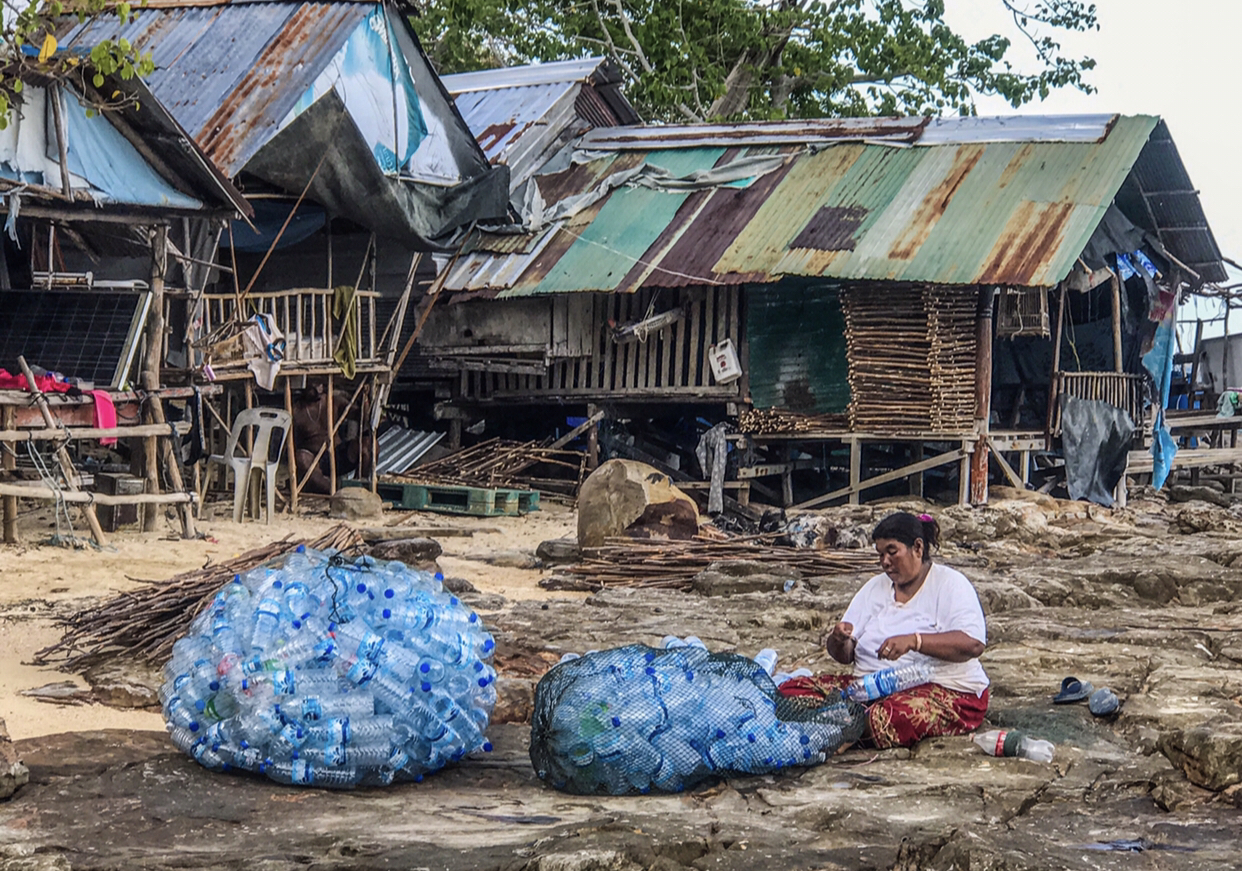 Sea Gypsy making fishing floats from plastic bottles
