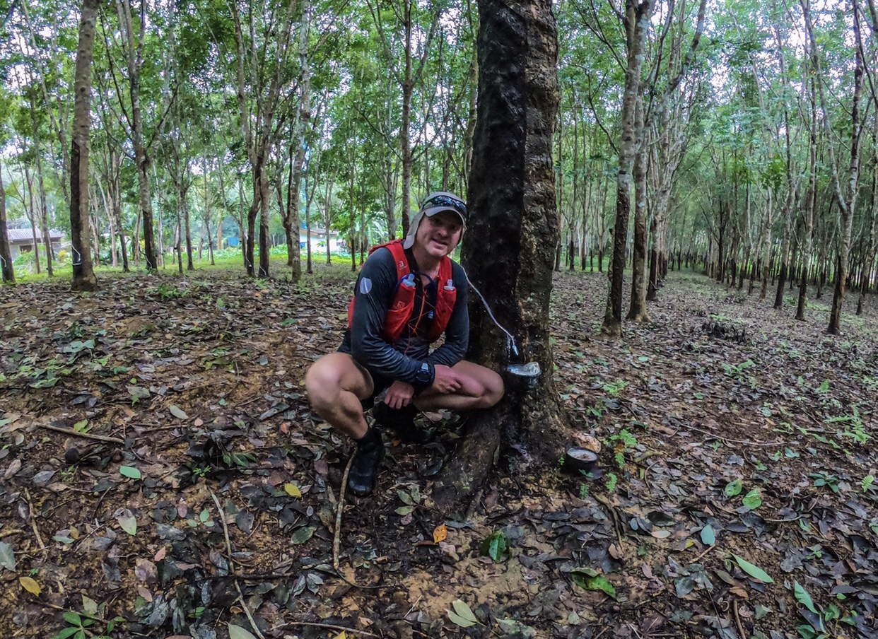 Todayโs Half Marathon was a Trail Run through the Jungle and rubber tree plantations, and it never stopped raining, which is actually a good thing, as it cools you down slightly.