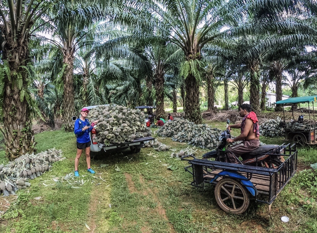 Today’s Jungle run was a 20km trail through the pineapple farms of Ao Nang, although the pineapples grow in the open fields, the farmers harvest them and sort through their crop under the trees in the shade.