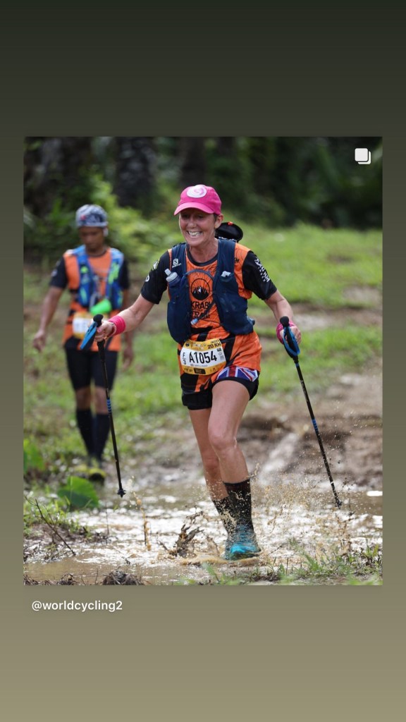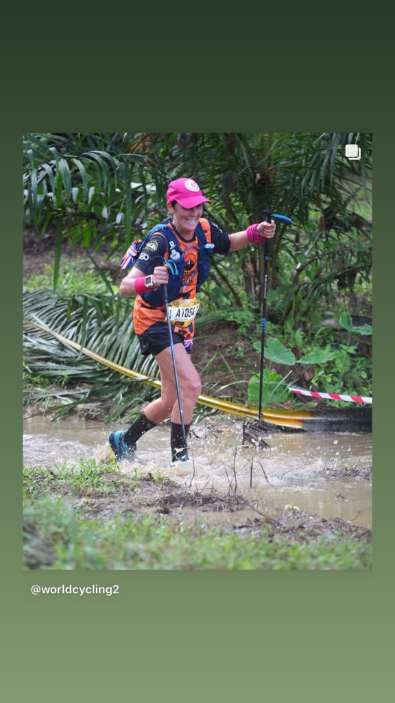 ..the race was a fantastic experience, Gabs did the 20km Trail and I did the 40km, and yes, its called a Trail Run, but most of the time we were running through rivers, balancing on fallen trees spanning sheer drops, scrambling through swaps and ditches, and the mountain climbs were so tough, they were super steep! everyone was climbing on all fours for mile after mile, it was near on a vertical climb, and due to the amount of rain we had throughout the night and still on the day, everywhere became a mud bath, so you spent half the time slipping back down the mountain and climbing back up again, it was difficult for everyone, although the Thai people are naturally very fit and strong, some of the Thai’s will run down a mountain whilst grabbing hold of a tree and using it to swing to the next, so that they could get down without falling, it was so amazing to see the skills of these people.