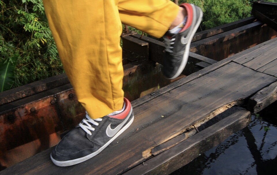 Any of the wooden planks on the bridge have been removed, just leaving one section which is only ten inches wide in places