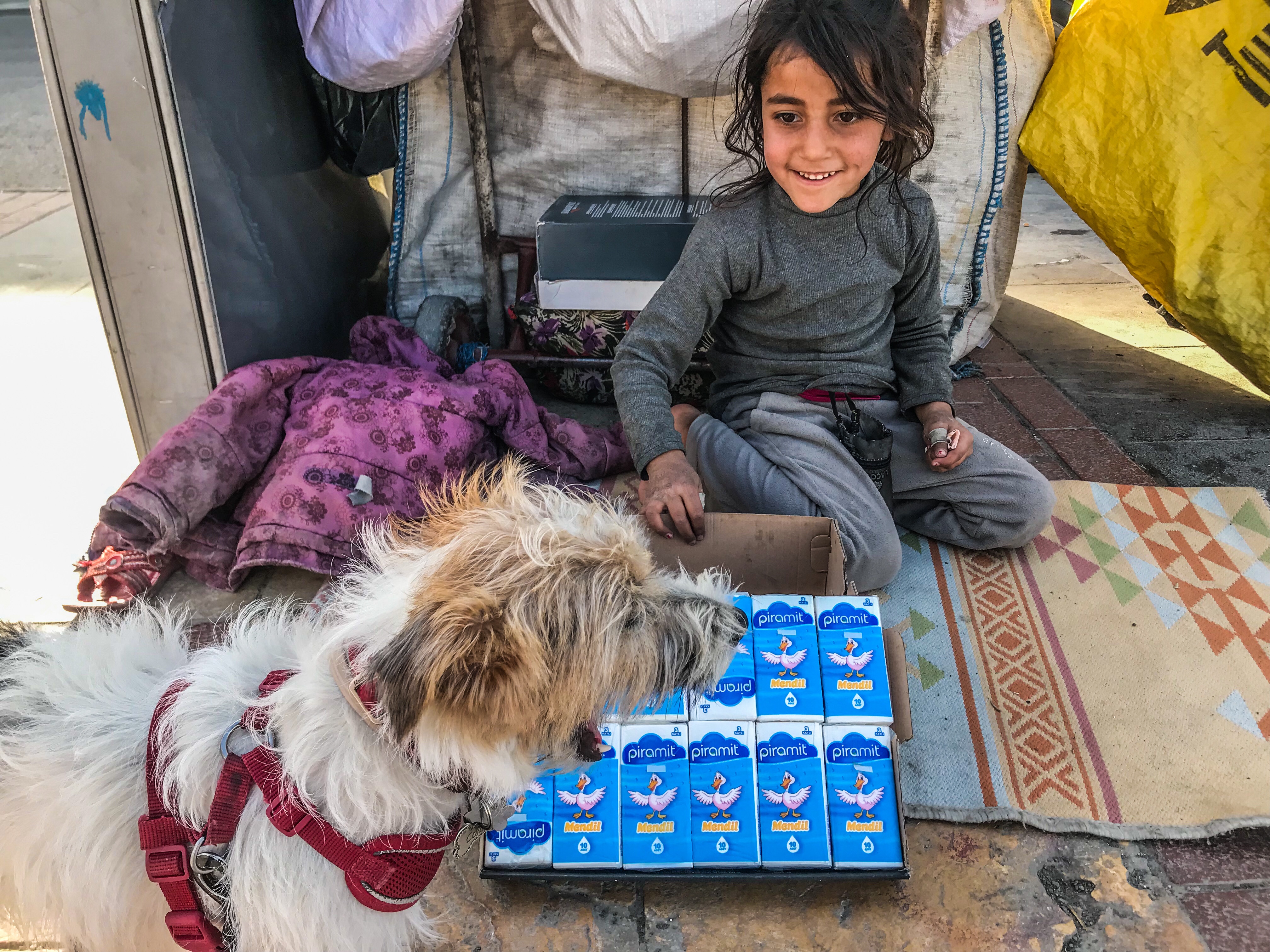 The first photo is of a little 7 year old girl called Sila, this was taken a few days ago in Sanliurfa Southeastern Turkey, Sila lives on the streets from a cardboard box, she walks the streets pushing a huge cart collecting plastic bottles and tin cans, you can see it just behind her, and like most other children sells packets of tissues.