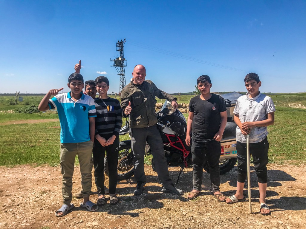 After last nights camp somewhere near the Iraq border, this morning we left in the early hours and stopped at the Syrian border where we had breakfast with some shepherd children, before heading to the Ancient City of Dara.